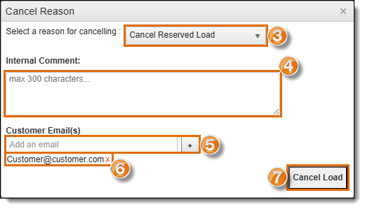 - Add an Internal Comment to the load if needed. A message is required for a cancellation reason of Other.