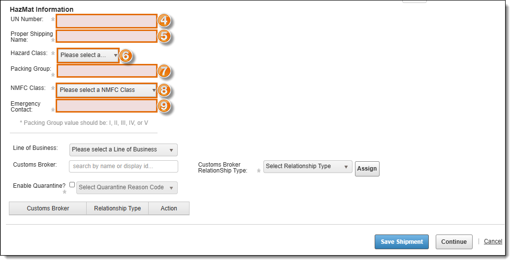 • The Hazmat information for the shipment, including the UN Number, Hazard Class, and Packing Group, must be available.