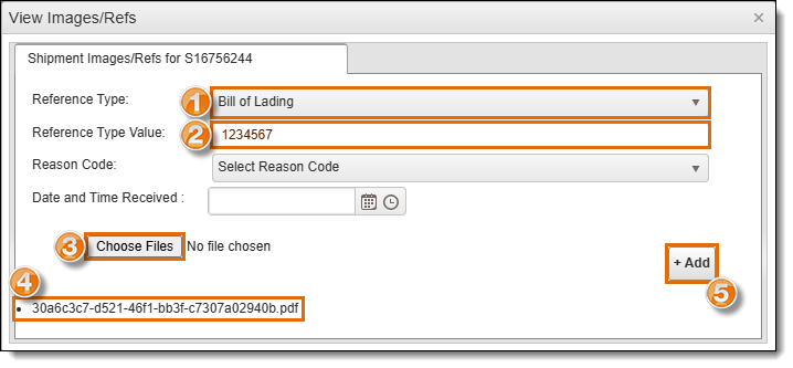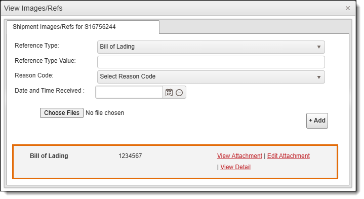 - The shipment must already exist. Images and files cannot be attached to references during the shipment entry process. Save the shipment before attaching images or files to a reference.