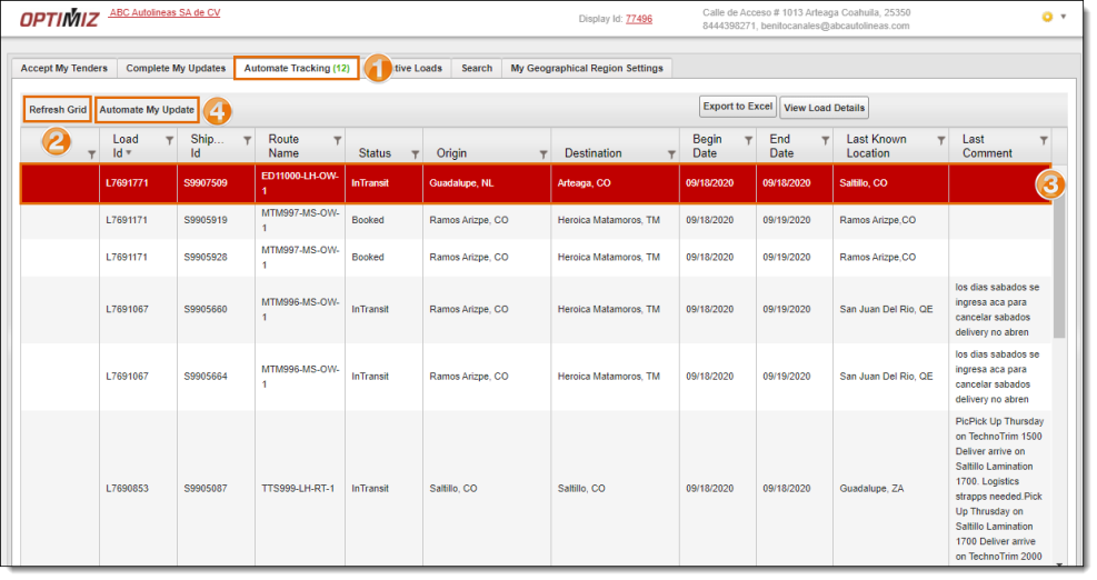 Some carriers that move freight for ProTrans use third party services like Project44 to track their trucks. ProTrans uses that capability to allow automatic updates to be sent to Optimiz.