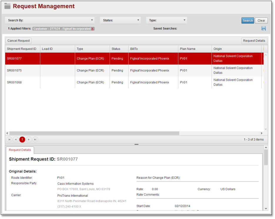Customer Portal stores request information on the Request Management page after you submit a request. You can use the search tools to find the exact set of requests for which you are looking. You can search all active and historical requests.