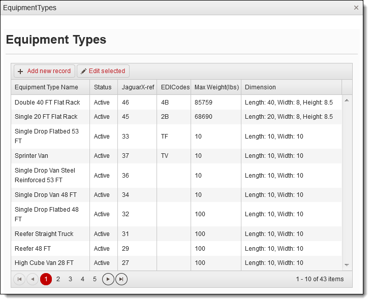 Optimiz stores data on a variety of equipment types, including standard types such as 53’ vans used in the U.S., and other types used abroad. This enables Optimiz to provide greater flexibility to ProTrans customers.