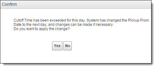 - If a user creates a shipment with a scheduled pickup time on the current day after the entered cutoff time, they will be prompted to roll the pickup over to the next day.