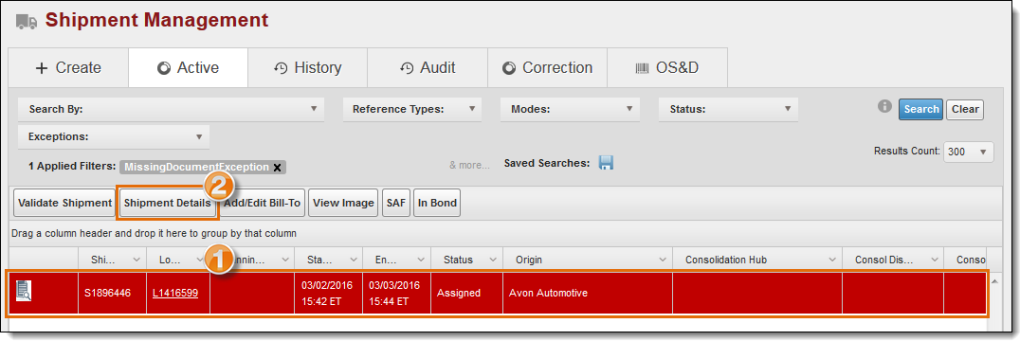 Once all documents have been associated with the shipment, the Missing Document exception will be removed.