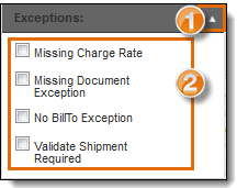 | Missing Charge Rate | Occurs when a shipment does not have a required Charge Rate. See Add a Charge Rate. |