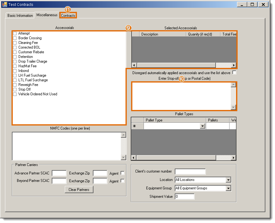 All contracts in Contract Manager can be tested to ensure they return accurate charges for the shipments they are intended to rate. These tests should be performed before activating the contract to In Production status to prevent incorrect rates from being given to Optimiz. The Test Contracts dialogue is intentionally complex, as it must be able to rate any possible type of shipment. However, most of the included options are not needed for most rating calls.