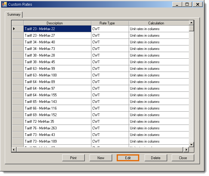 - Modify any rows on the Edit Custom Rate tab as needed.
