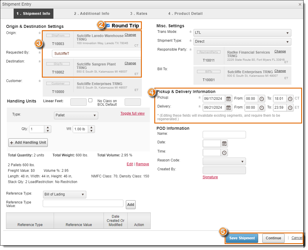 Shipment Info - Handling Units and References