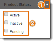 Users can search by status in Product Management. Products can be Active, Inactive, or Pending. A pending product has been created but needs approval before being used.