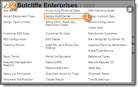 3. Click Assign Hub/Carrier. Hub and Carrier dialog box displays.