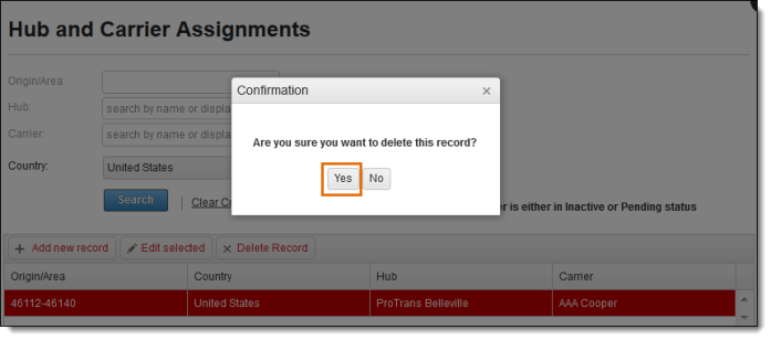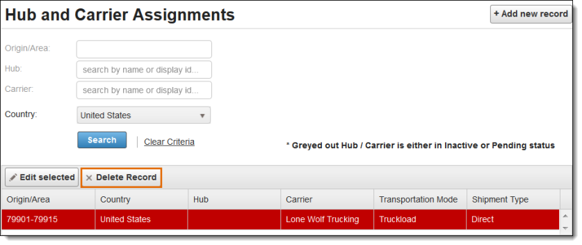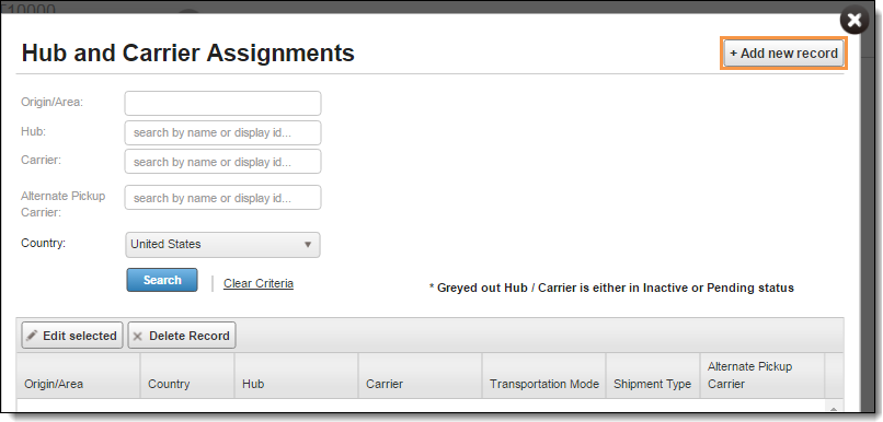 Operational hubs must be configured in the Application Settings to be available for selection. See Add Hub and Carrier Assignment