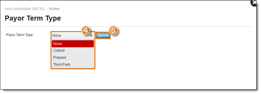 - Select the Payor Term Type from the dropdown; default setting is None.