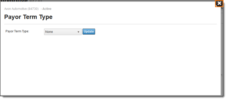 - Click the X in the upper-right corner of the Payor Term Type box to close it and return to the customer hierarchy.