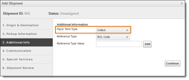 Once set, the Payor Term is used during Shipment Entry, as shown below.