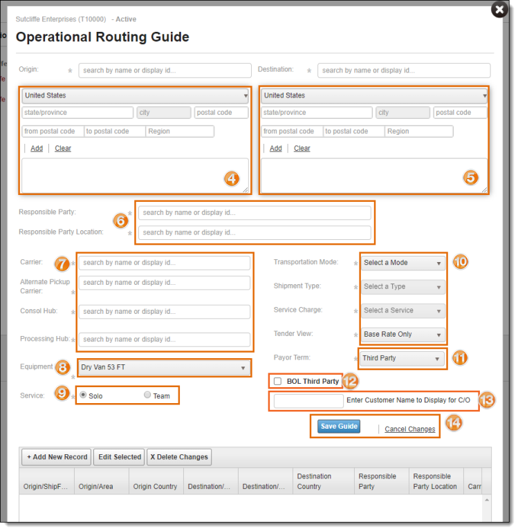 The Operational Routing Guide should be set whenever a customer has certain settings that can be designated by region.