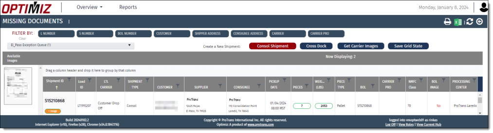 - Locate shipment paperwork and assign the paperwork to shipments in Optimiz.