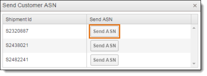 - Click Send ASN on the line of the shipment whose ASN is to be sent.