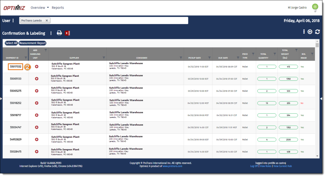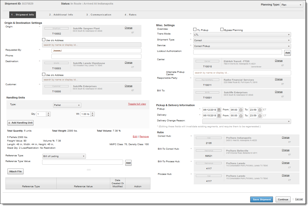 2. Click the Shipment ID of the shipment to be edited.