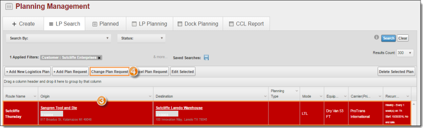 2. Search for the logistics plan to be canceled. See Search for a Logistics Plan for details.