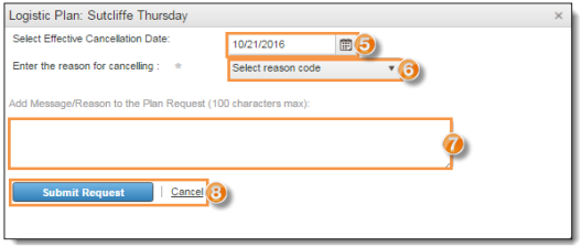 The Cancel Plan Request process is only for recurring, active logistics plans. A Cancel Plan Request cannot be submitted for a plan that has expired.