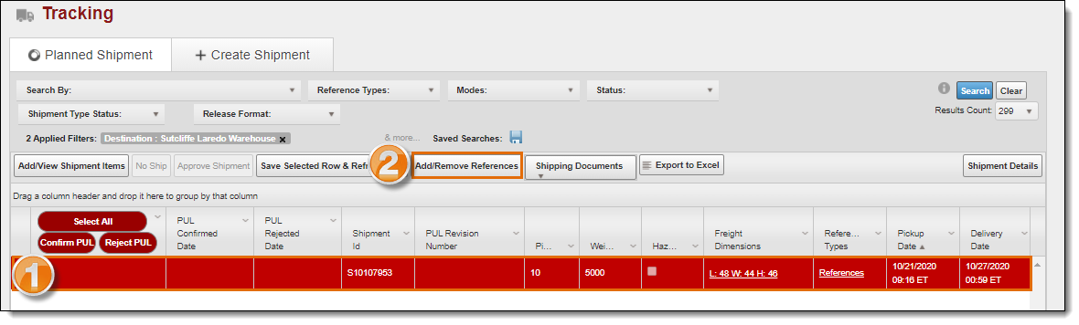 Users are able to view, add, and remove a Complemento Carta Porte from existing shipments from the Tracking page. Any items included as a reference are viewable to all relevant users, including the customer, supplier, carrier, and ProTrans employees.